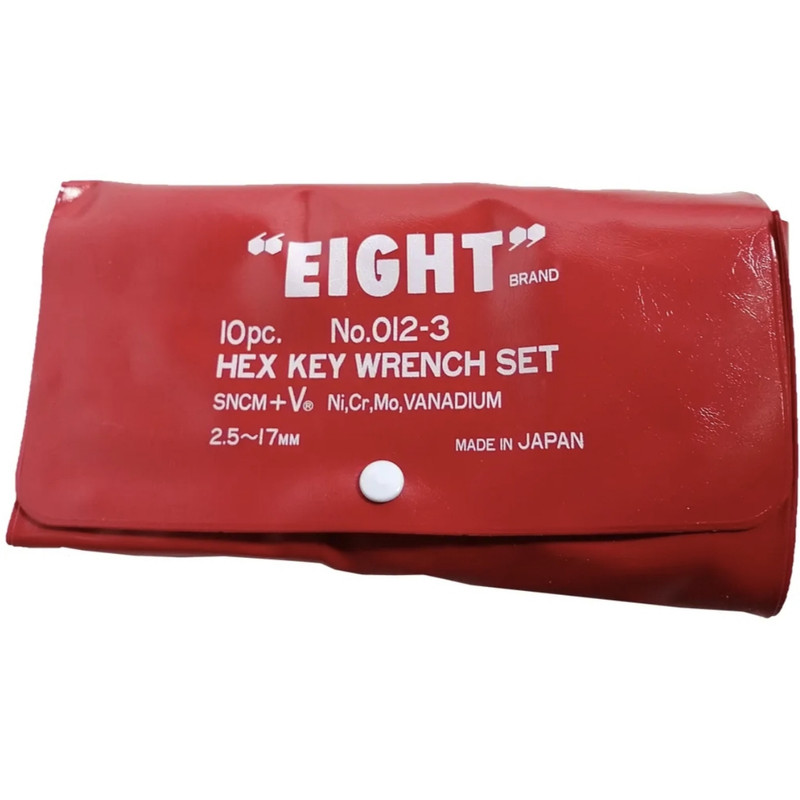 آچار آلن ایت ساخت ژاپن از شماره ۲/۵ تا ۱۷ میلیمتر ، بسته ۱۰ عددی ، جنس از فولاد کروم وانادیوم میباشد ، با روکش سیاه رنگ که باعث عدم لغزش هنگام کار میشود